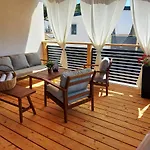 Guests can dine at a dining area equipped with tea and coffee making equipment. The kitchen also offers a microwave oven, a refrigerator, and kitchenware. The property can be reached by car in 59 minutes from Zadar airport.